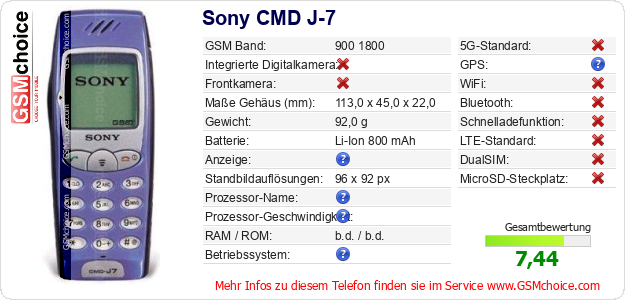 Hast du eigene Webseite? Willst du die Informationen über Standarddaten des Handys Sony CMD J-7 irgendwo veröffentlichen? Das ist sehr einfach. Du kannst das Bild herunterladen oder kopieren und auf der Webseite folgenden Code hinzufügen:Das Einfügen von diesem Code verursacht das Anzeigen von dem folgenden Bild: