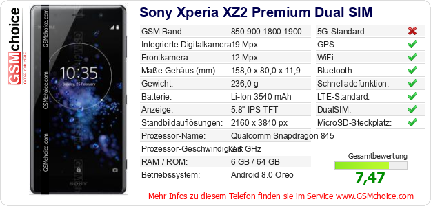 Daten des Mobiltelefons Sony Xperia XZ2 Premium Dual SIM auf Ihrer Seite