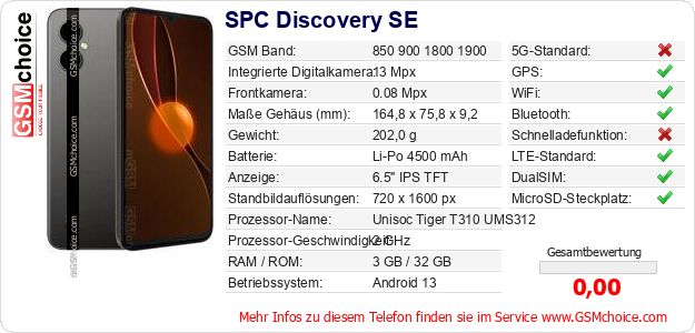 Daten des Mobiltelefons SPC Discovery SE auf Ihrer Seite