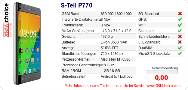 Daten des Mobiltelefons S-Tell P770 auf Ihrer Seite
