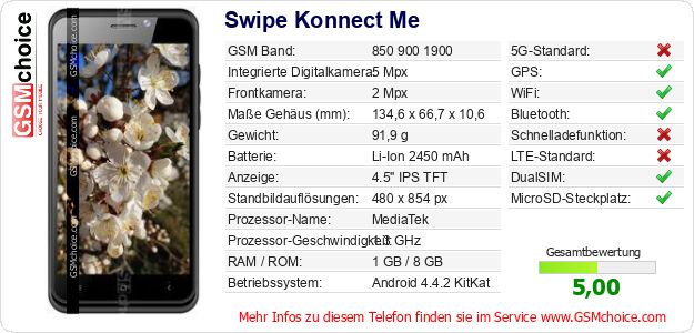 Hast du eigene Webseite? Willst du die Informationen über Standarddaten des Handys Swipe Konnect Me irgendwo veröffentlichen? Das ist sehr einfach. Du kannst das Bild herunterladen oder kopieren und auf der Webseite folgenden Code hinzufügen:Das Einfügen von diesem Code verursacht das Anzeigen von dem folgenden Bild: