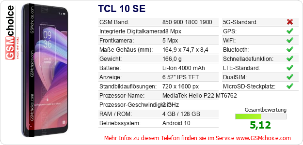 Hast du eigene Webseite? Willst du die Informationen über Standarddaten des Handys TCL 10 SE irgendwo veröffentlichen? Das ist sehr einfach. Du kannst das Bild herunterladen oder kopieren und auf der Webseite folgenden Code hinzufügen:Das Einfügen von diesem Code verursacht das Anzeigen von dem folgenden Bild: