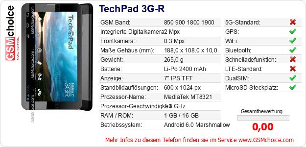 Daten des Mobiltelefons TechPad 3G-R auf Ihrer Seite