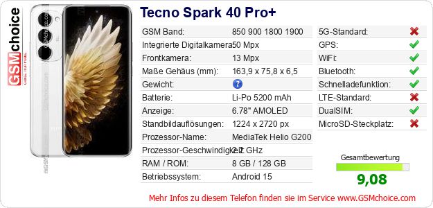 Daten des Mobiltelefons Tecno Spark 40 Pro+ auf Ihrer Seite
