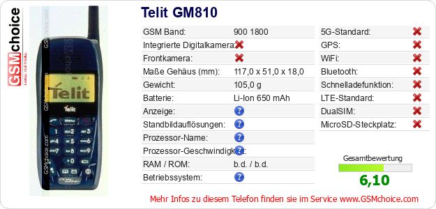 Hast du eigene Webseite? Willst du die Informationen über Standarddaten des Handys Telit GM810 irgendwo veröffentlichen? Das ist sehr einfach. Du kannst das Bild herunterladen oder kopieren und auf der Webseite folgenden Code hinzufügen:Das Einfügen von diesem Code verursacht das Anzeigen von dem folgenden Bild: