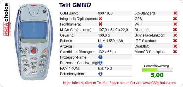 Hast du eigene Webseite? Willst du die Informationen über Standarddaten des Handys Telit GM882 irgendwo veröffentlichen? Das ist sehr einfach. Du kannst das Bild herunterladen oder kopieren und auf der Webseite folgenden Code hinzufügen:Das Einfügen von diesem Code verursacht das Anzeigen von dem folgenden Bild: