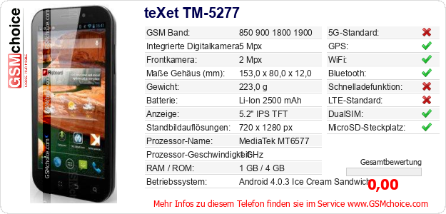 Daten des Mobiltelefons teXet TM-5277 auf Ihrer Seite
