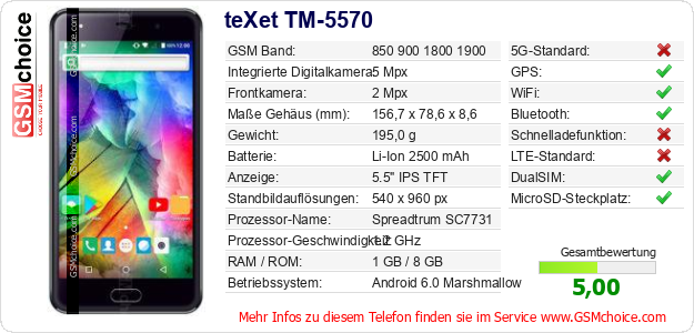 Daten des Mobiltelefons teXet TM-5570 auf Ihrer Seite