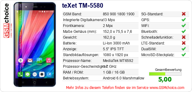 Daten des Mobiltelefons teXet TM-5580 auf Ihrer Seite