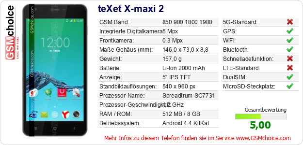 Hast du eigene Webseite? Willst du die Informationen über Standarddaten des Handys teXet X-maxi 2 irgendwo veröffentlichen? Das ist sehr einfach. Du kannst das Bild herunterladen oder kopieren und auf der Webseite folgenden Code hinzufügen:Das Einfügen von diesem Code verursacht das Anzeigen von dem folgenden Bild: