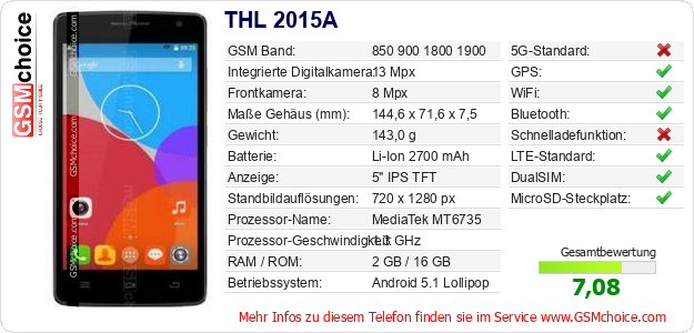 Hast du eigene Webseite? Willst du die Informationen über Standarddaten des Handys THL 2015A irgendwo veröffentlichen? Das ist sehr einfach. Du kannst das Bild herunterladen oder kopieren und auf der Webseite folgenden Code hinzufügen:Das Einfügen von diesem Code verursacht das Anzeigen von dem folgenden Bild: