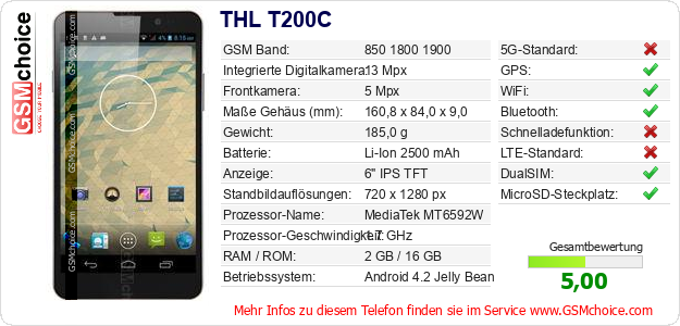 Daten des Mobiltelefons THL T200C auf Ihrer Seite