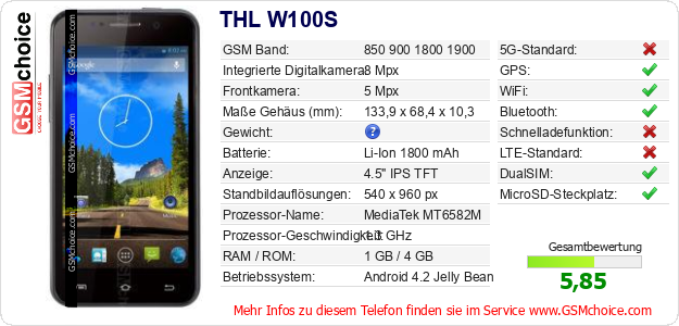 Hast du eigene Webseite? Willst du die Informationen über Standarddaten des Handys THL W100S irgendwo veröffentlichen? Das ist sehr einfach. Du kannst das Bild herunterladen oder kopieren und auf der Webseite folgenden Code hinzufügen:Das Einfügen von diesem Code verursacht das Anzeigen von dem folgenden Bild: