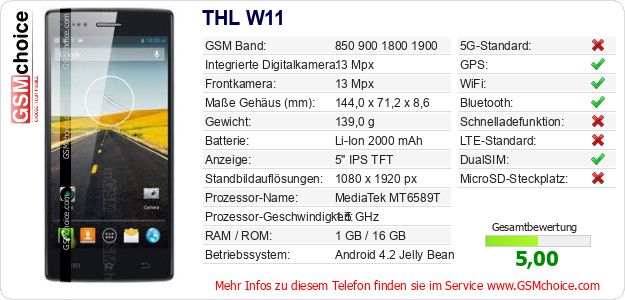 Hast du eigene Webseite? Willst du die Informationen über Standarddaten des Handys THL W11 irgendwo veröffentlichen? Das ist sehr einfach. Du kannst das Bild herunterladen oder kopieren und auf der Webseite folgenden Code hinzufügen:Das Einfügen von diesem Code verursacht das Anzeigen von dem folgenden Bild: