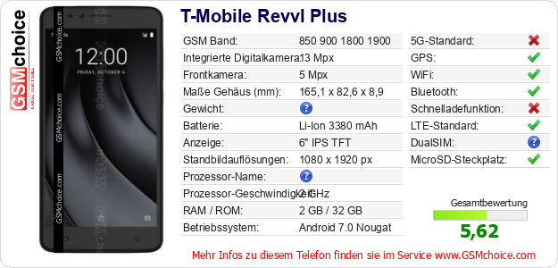 Daten des Mobiltelefons T-Mobile Revvl Plus auf Ihrer Seite