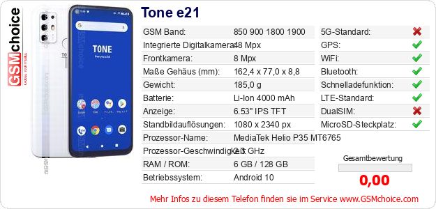 Daten des Mobiltelefons Tone e21 auf Ihrer Seite
