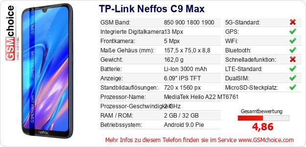 Daten des Mobiltelefons TP-Link Neffos C9 Max auf Ihrer Seite