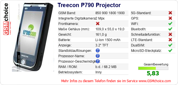Daten des Mobiltelefons Treecon P790 Projector auf Ihrer Seite