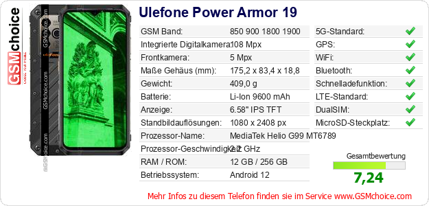 Hast du eigene Webseite? Willst du die Informationen über Standarddaten des Handys Ulefone Power Armor 19 irgendwo veröffentlichen? Das ist sehr einfach. Du kannst das Bild herunterladen oder kopieren und auf der Webseite folgenden Code hinzufügen:Das Einfügen von diesem Code verursacht das Anzeigen von dem folgenden Bild: