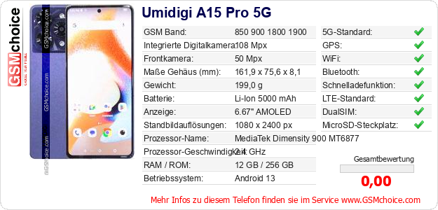 Daten des Mobiltelefons Umidigi A15 Pro 5G auf Ihrer Seite