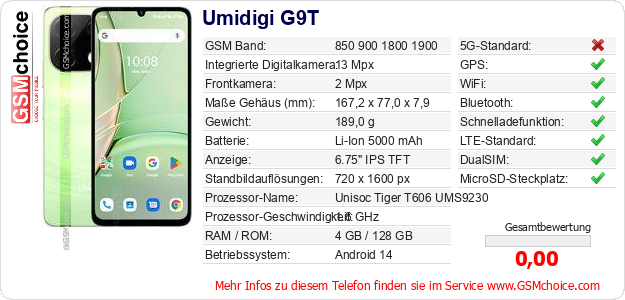 Hast du eigene Webseite? Willst du die Informationen über Standarddaten des Handys Umidigi G9T irgendwo veröffentlichen? Das ist sehr einfach. Du kannst das Bild herunterladen oder kopieren und auf der Webseite folgenden Code hinzufügen:Das Einfügen von diesem Code verursacht das Anzeigen von dem folgenden Bild: