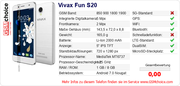 Hast du eigene Webseite? Willst du die Informationen über Standarddaten des Handys Vivax Fun S20 irgendwo veröffentlichen? Das ist sehr einfach. Du kannst das Bild herunterladen oder kopieren und auf der Webseite folgenden Code hinzufügen:Das Einfügen von diesem Code verursacht das Anzeigen von dem folgenden Bild:
