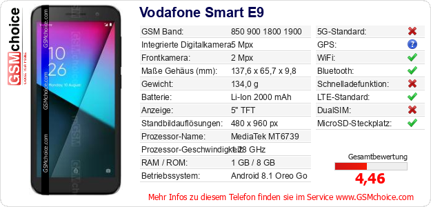 Hast du eigene Webseite? Willst du die Informationen über Standarddaten des Handys Vodafone Smart E9 irgendwo veröffentlichen? Das ist sehr einfach. Du kannst das Bild herunterladen oder kopieren und auf der Webseite folgenden Code hinzufügen:Das Einfügen von diesem Code verursacht das Anzeigen von dem folgenden Bild: