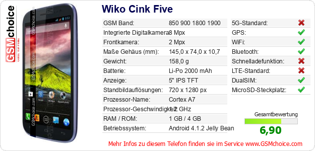 Hast du eigene Webseite? Willst du die Informationen über Standarddaten des Handys Wiko Cink Five irgendwo veröffentlichen? Das ist sehr einfach. Du kannst das Bild herunterladen oder kopieren und auf der Webseite folgenden Code hinzufügen:Das Einfügen von diesem Code verursacht das Anzeigen von dem folgenden Bild: