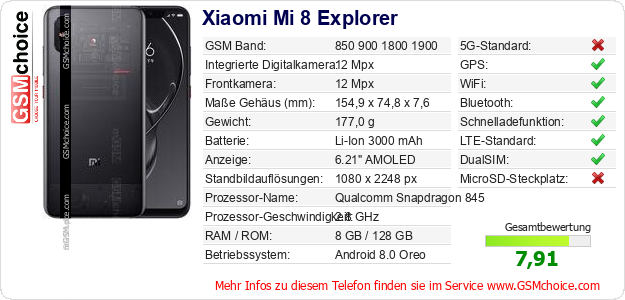 Daten des Mobiltelefons Xiaomi Mi 8 Explorer auf Ihrer Seite