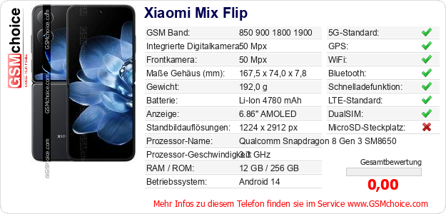 Daten des Mobiltelefons Xiaomi Mix Flip auf Ihrer Seite