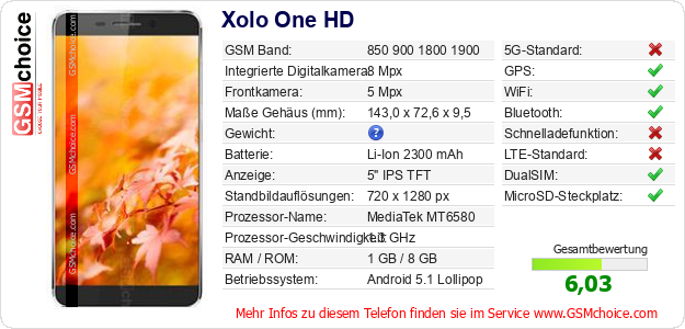 Hast du eigene Webseite? Willst du die Informationen über Standarddaten des Handys Xolo One HD irgendwo veröffentlichen? Das ist sehr einfach. Du kannst das Bild herunterladen oder kopieren und auf der Webseite folgenden Code hinzufügen:Das Einfügen von diesem Code verursacht das Anzeigen von dem folgenden Bild:
