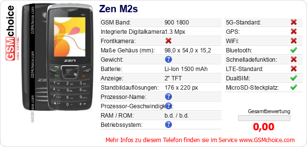 Hast du eigene Webseite? Willst du die Informationen über Standarddaten des Handys Zen M2s irgendwo veröffentlichen? Das ist sehr einfach. Du kannst das Bild herunterladen oder kopieren und auf der Webseite folgenden Code hinzufügen:Das Einfügen von diesem Code verursacht das Anzeigen von dem folgenden Bild: