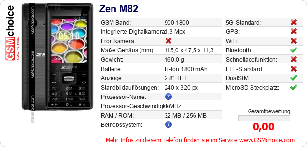 Hast du eigene Webseite? Willst du die Informationen über Standarddaten des Handys Zen M82 irgendwo veröffentlichen? Das ist sehr einfach. Du kannst das Bild herunterladen oder kopieren und auf der Webseite folgenden Code hinzufügen:Das Einfügen von diesem Code verursacht das Anzeigen von dem folgenden Bild: