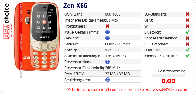 Hast du eigene Webseite? Willst du die Informationen über Standarddaten des Handys Zen X66 irgendwo veröffentlichen? Das ist sehr einfach. Du kannst das Bild herunterladen oder kopieren und auf der Webseite folgenden Code hinzufügen:Das Einfügen von diesem Code verursacht das Anzeigen von dem folgenden Bild: