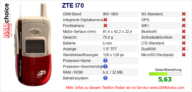 Hast du eigene Webseite? Willst du die Informationen über Standarddaten des Handys ZTE I70 irgendwo veröffentlichen? Das ist sehr einfach. Du kannst das Bild herunterladen oder kopieren und auf der Webseite folgenden Code hinzufügen:Das Einfügen von diesem Code verursacht das Anzeigen von dem folgenden Bild: