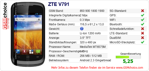 Hast du eigene Webseite? Willst du die Informationen über Standarddaten des Handys ZTE V791 irgendwo veröffentlichen? Das ist sehr einfach. Du kannst das Bild herunterladen oder kopieren und auf der Webseite folgenden Code hinzufügen:Das Einfügen von diesem Code verursacht das Anzeigen von dem folgenden Bild: