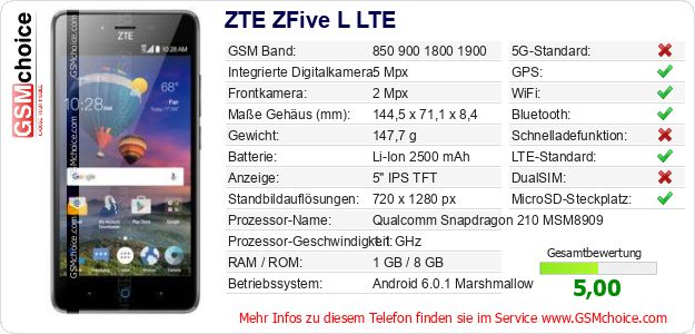 Hast du eigene Webseite? Willst du die Informationen über Standarddaten des Handys ZTE ZFive L LTE irgendwo veröffentlichen? Das ist sehr einfach. Du kannst das Bild herunterladen oder kopieren und auf der Webseite folgenden Code hinzufügen:Das Einfügen von diesem Code verursacht das Anzeigen von dem folgenden Bild:
