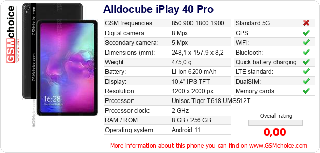 Do you have your website? Do you want to insert information about basic phone data of Alldocube iPlay 40 Pro somewhere? It is very easy. You can download the picture, or copy and paste the code below on the page:Pasting this code will display the following image: