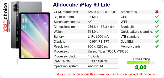 Do you have your website? Do you want to insert information about basic phone data of Alldocube iPlay 60 Lite somewhere? It is very easy. You can download the picture, or copy and paste the code below on the page:Pasting this code will display the following image:
