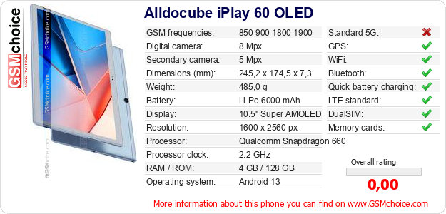 Do you have your website? Do you want to insert information about basic phone data of Alldocube iPlay 60 OLED somewhere? It is very easy. You can download the picture, or copy and paste the code below on the page:Pasting this code will display the following image:
