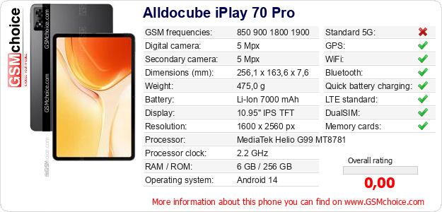 Do you have your website? Do you want to insert information about basic phone data of Alldocube iPlay 70 Pro somewhere? It is very easy. You can download the picture, or copy and paste the code below on the page:Pasting this code will display the following image:
