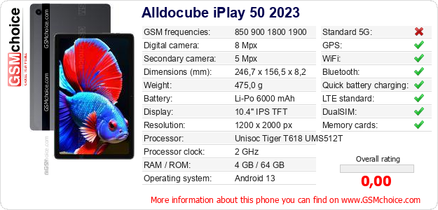 Do you have your website? Do you want to insert information about basic phone data of Alldocube iPlay 50 2023 somewhere? It is very easy. You can download the picture, or copy and paste the code below on the page:Pasting this code will display the following image: