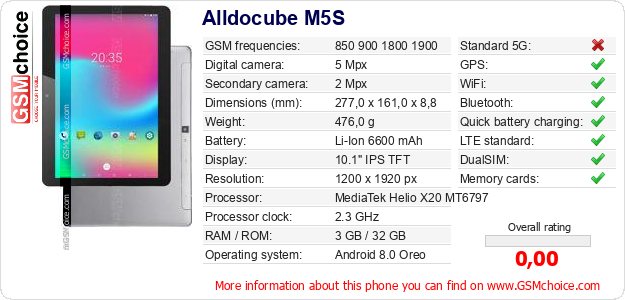 Do you have your website? Do you want to insert information about basic phone data of Alldocube M5S somewhere? It is very easy. You can download the picture, or copy and paste the code below on the page:Pasting this code will display the following image: