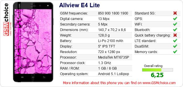 Do you have your website? Do you want to insert information about basic phone data of Allview E4 Lite somewhere? It is very easy. You can download the picture, or copy and paste the code below on the page:Pasting this code will display the following image: