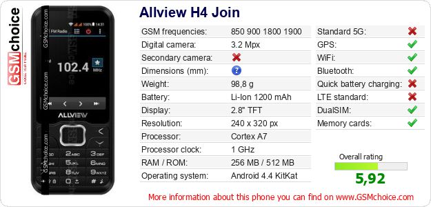 Do you have your website? Do you want to insert information about basic phone data of Allview H4 Join somewhere? It is very easy. You can download the picture, or copy and paste the code below on the page:Pasting this code will display the following image:
