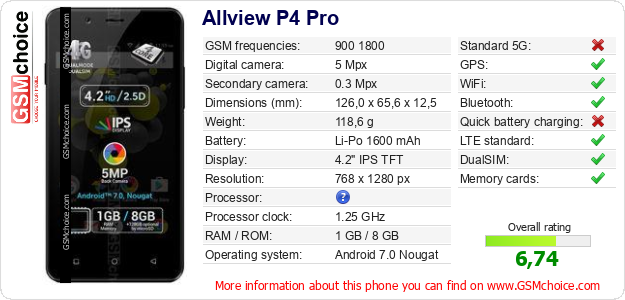 Do you have your website? Do you want to insert information about basic phone data of Allview P4 Pro somewhere? It is very easy. You can download the picture, or copy and paste the code below on the page:Pasting this code will display the following image: