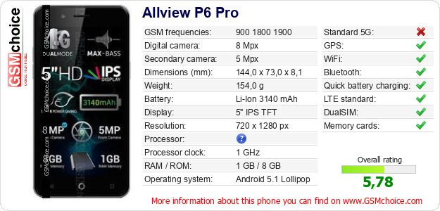 Do you have your website? Do you want to insert information about basic phone data of Allview P6 Pro somewhere? It is very easy. You can download the picture, or copy and paste the code below on the page:Pasting this code will display the following image: