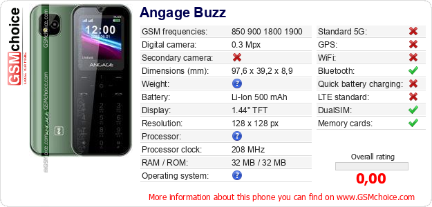 Do you have your website? Do you want to insert information about basic phone data of Angage Buzz somewhere? It is very easy. You can download the picture, or copy and paste the code below on the page:Pasting this code will display the following image: