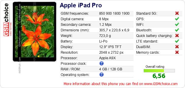 Do you have your website? Do you want to insert information about basic phone data of Apple iPad Pro somewhere? It is very easy. You can download the picture, or copy and paste the code below on the page:Pasting this code will display the following image: