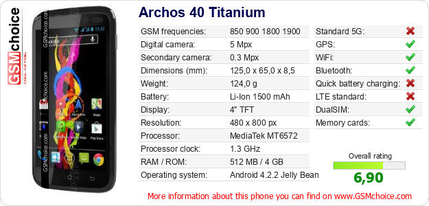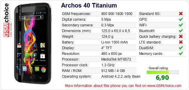 Do you have your website? Do you want to insert information about basic phone data of Archos 40 Titanium somewhere? It is very easy. You can download the picture, or copy and paste the code below on the page:Pasting this code will display the following image: